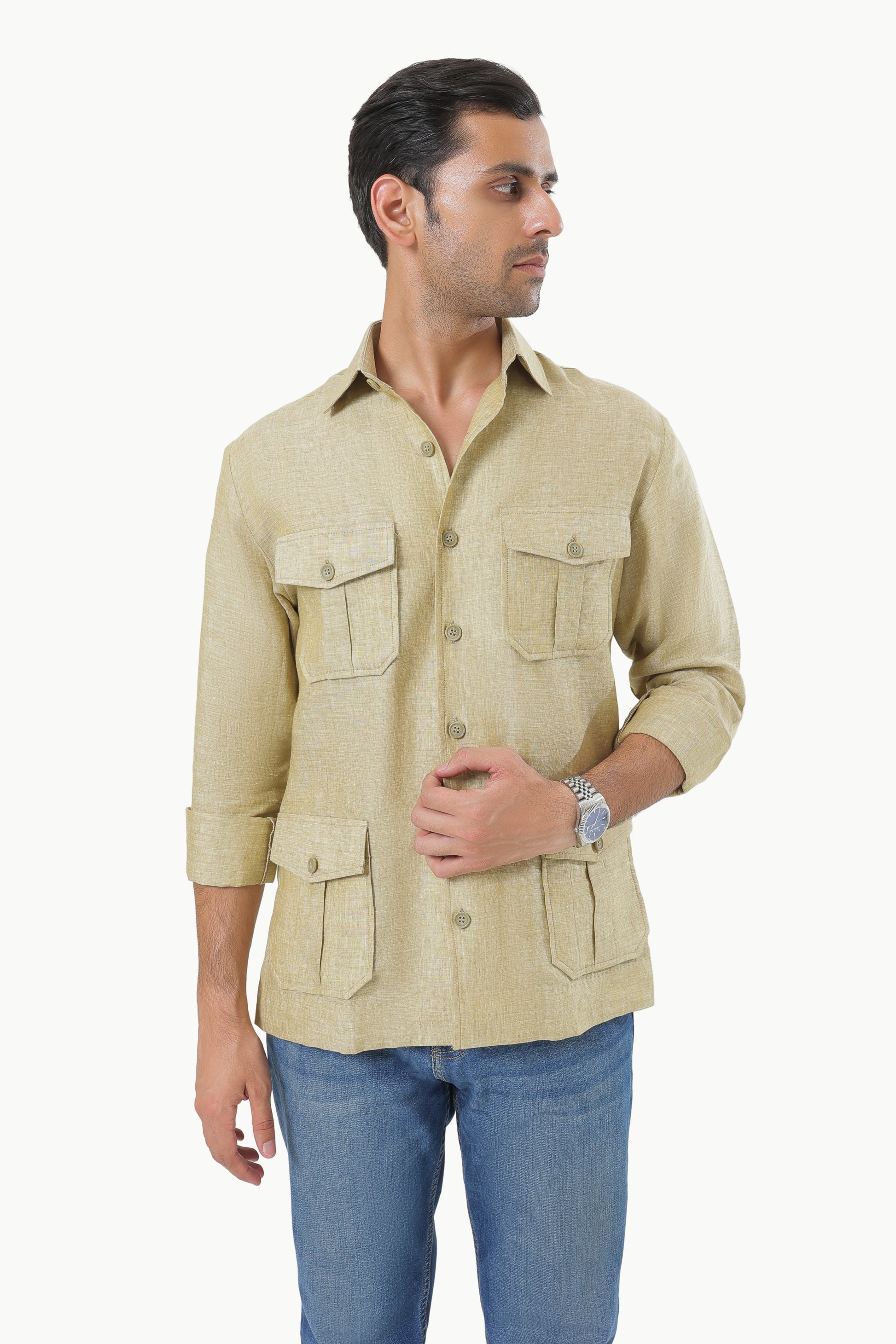 Inspired by utilitarian classics and reimagined for modern wardrobes, the Sandstone Trail shirt is crafted in a rich dark beige hue that echoes earth and movement. Made from breathable, durable fabric, it features four functional pockets - a nod to traditional hunter styling - paired with clean tailoring for a contemporary edge. Whether layered or worn solo, this shirt brings effortless structure and subtle sophistication to everyday adventures.
